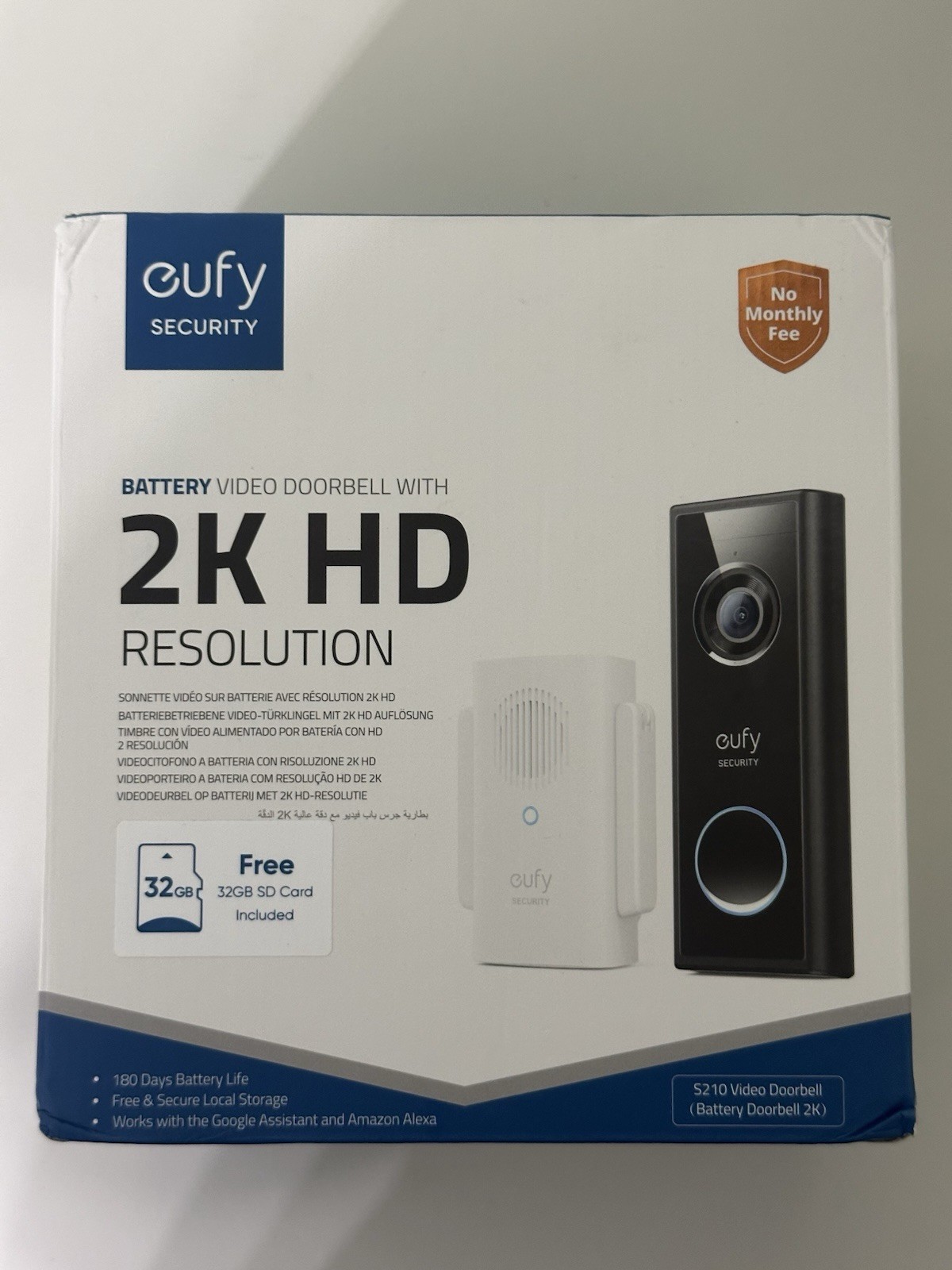 Eufy S210 Wireless Doorbell Camera 2K HD + 32GB MicroSD | 180 Day Battery