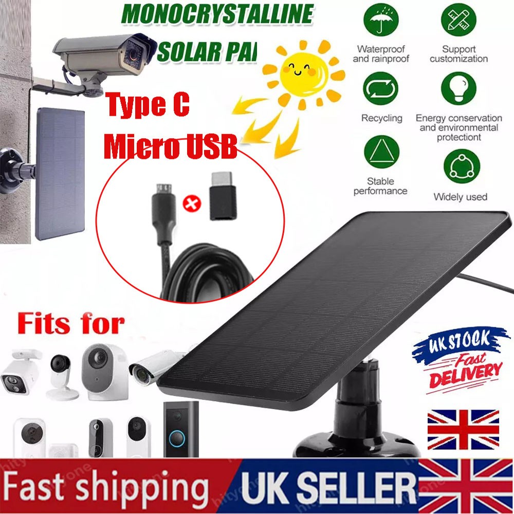 Solar Panel Charger for Eufy Eufycam Cam E/2C/2/2 Pro Camera USB Type-C IP65