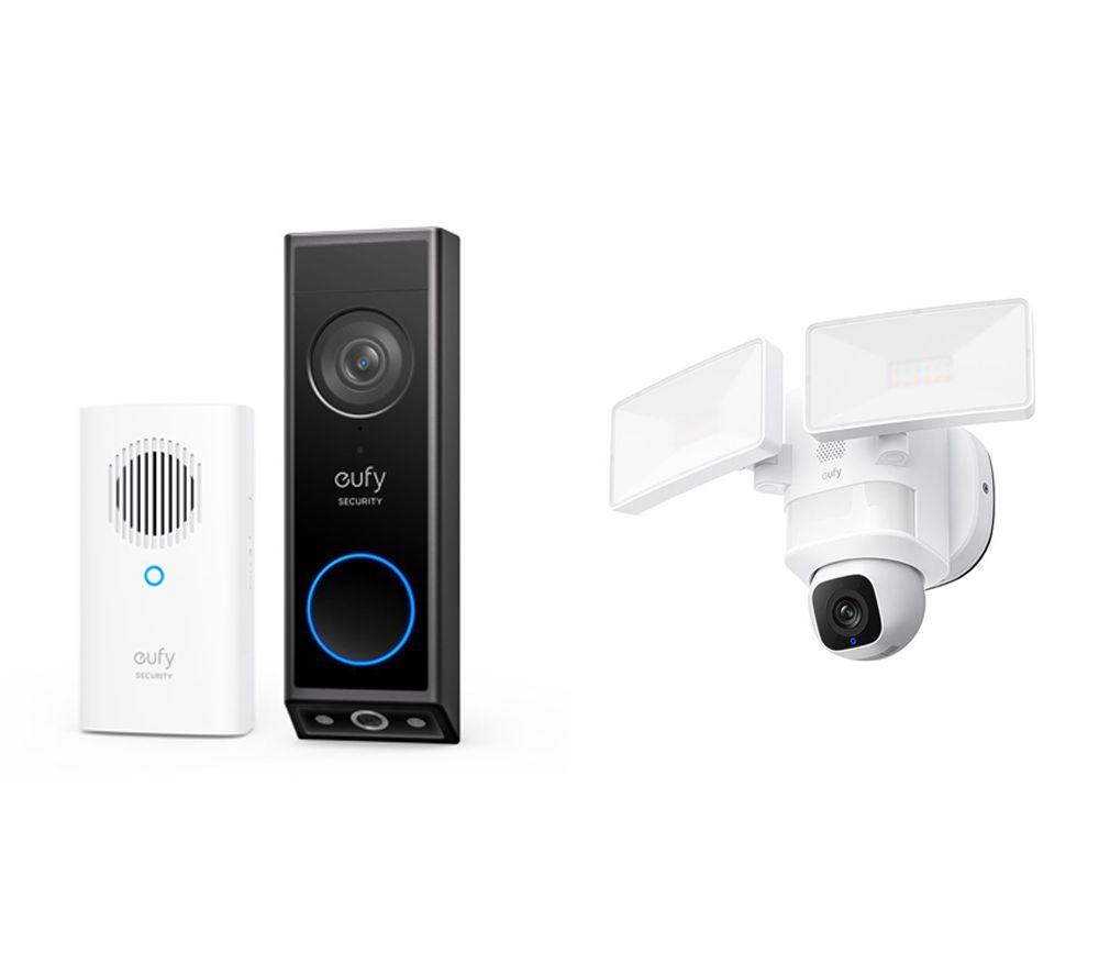 Eufy E340 2K Dual Camera Smart Video Doorbell & Floodlight E30 2K WiFi Security Camera Bundle, Black
