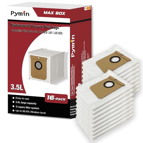 Pymin 16 Pack Replacement Dust Bags Compatible with Eufy L50 & L60 SES, L60 Hybrid SES Self Empty Station, 3.5L Dirt Disposal Bags for Haier H9+, Conga Home 10000, 8090 Ultra, 9090 AI Vacuum Cleaner