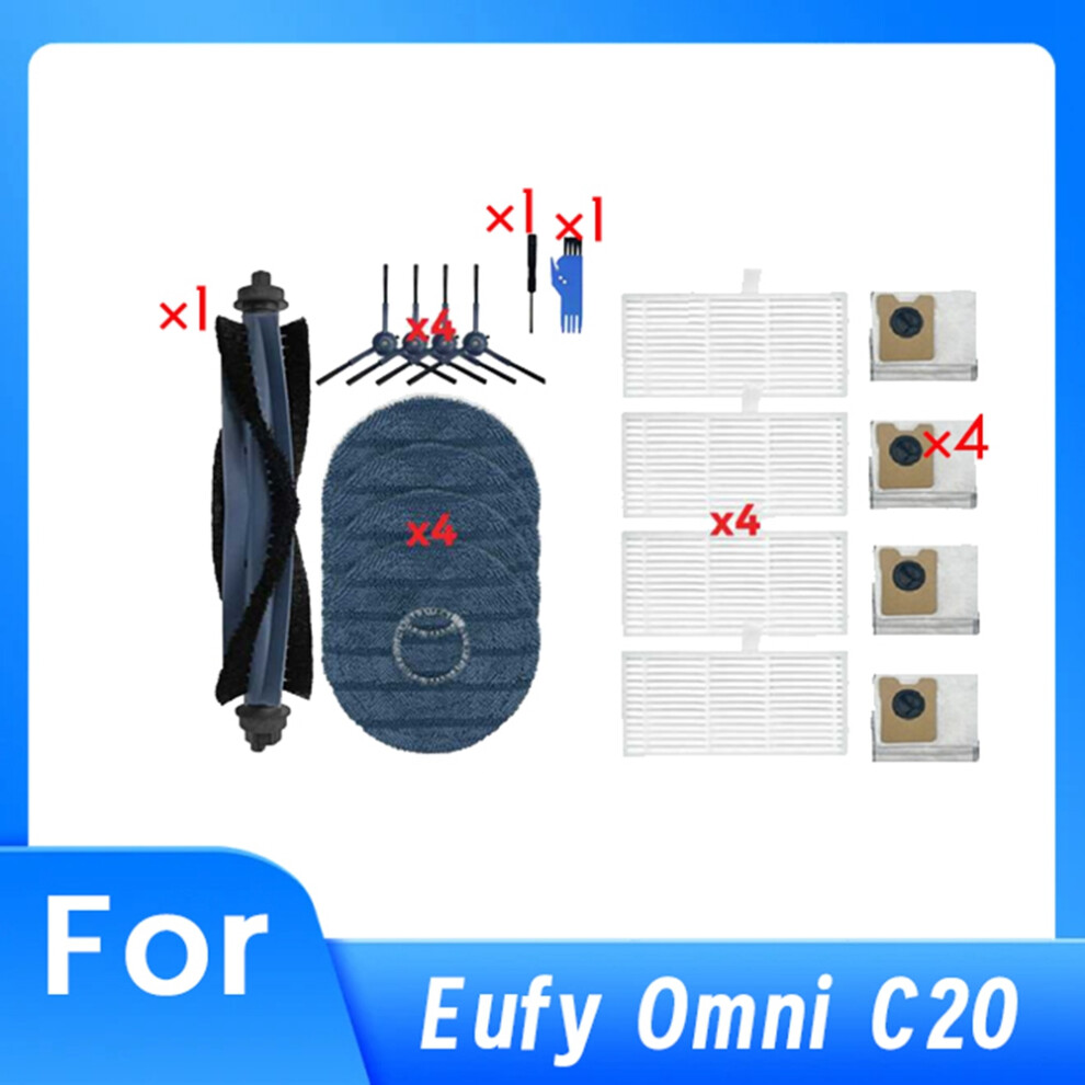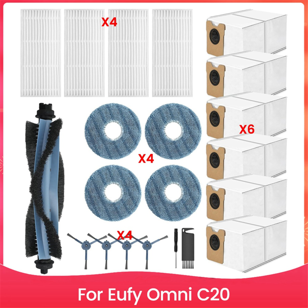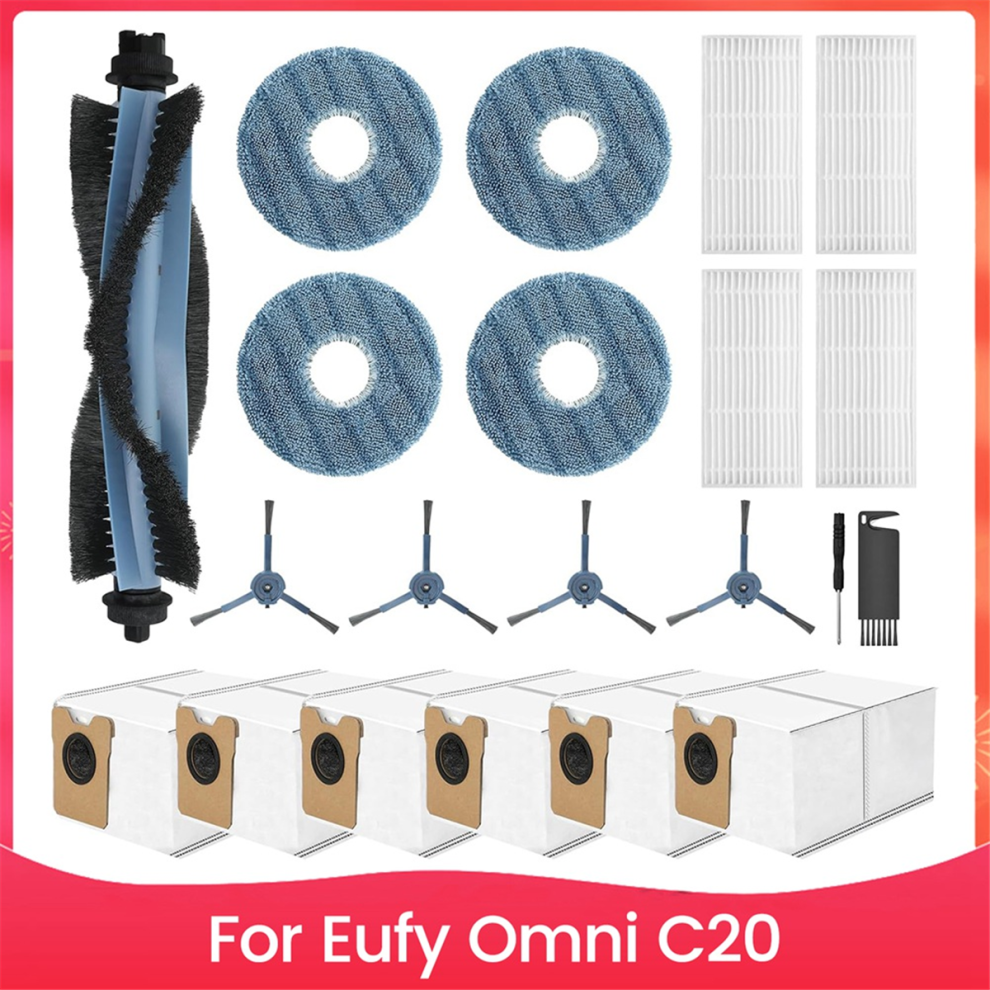Fenkabs 19 Pack Accessories for Eufy Omni C20 Robot Vacuum Cleaner, 1 Main Brush, 4 Dust Bags, 4 Mop Pads, 4 HEPA Filters, 4 Side Brushes, 1 Cleaning Brush, 1 Screwdriver