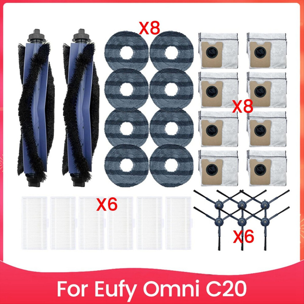 30PCS Vacuum Brush Filter Dust Bag and Mop Cloth Set for Eufy Omni C20 Vacuum Cleaner Accessories Replacement Parts