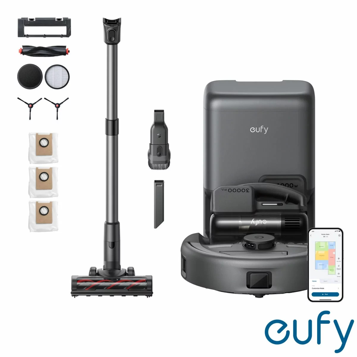 Eufy Robot Vacuum 3-in-1 E20 Handheld Vacuum Stick Vacuum Robot Vacuum 30,000 Pa