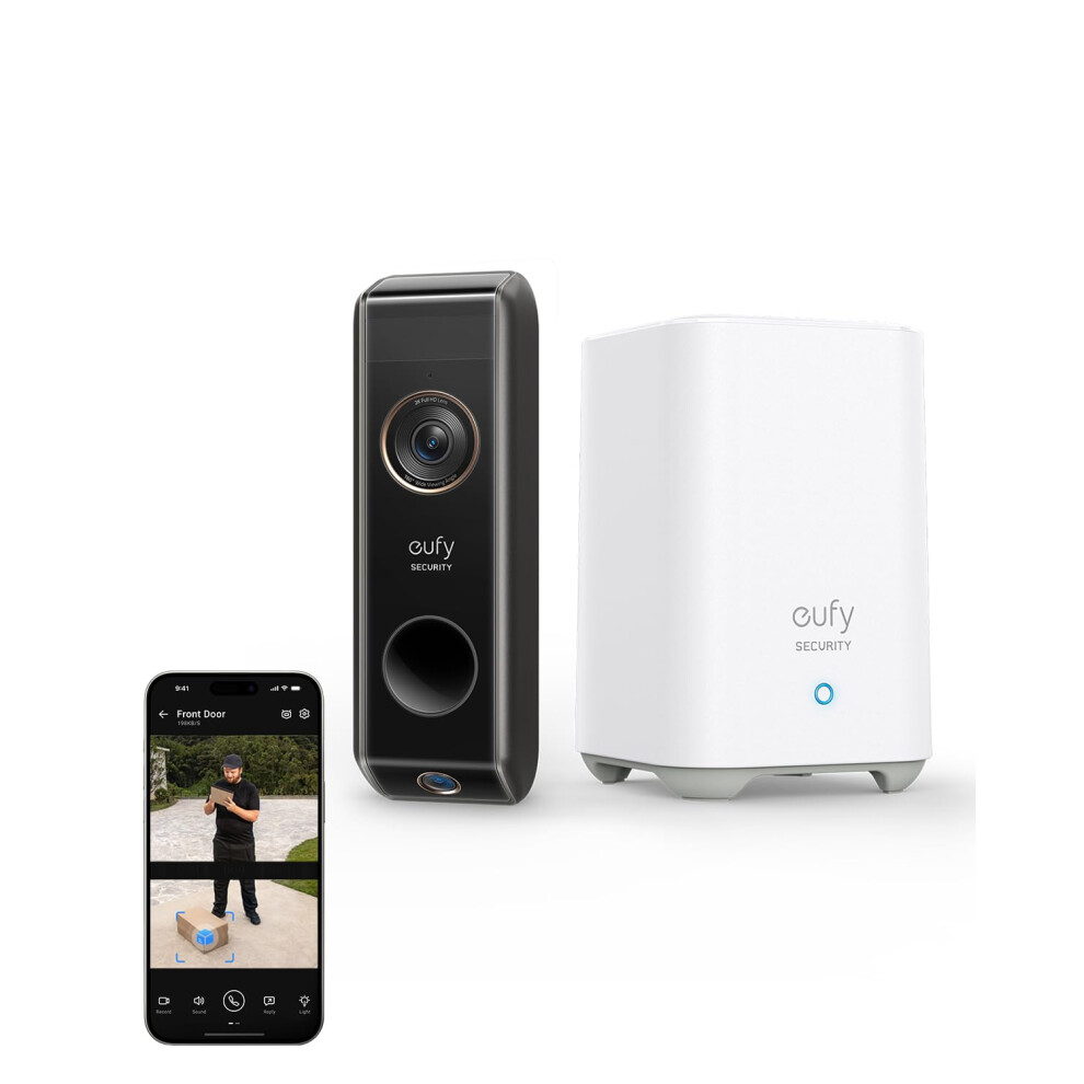 eufy Security Video Doorbell 2K (Battery-Powered) with HomeBase - 2K HD, Local 16GB Storage, No Monthly Fee, On-Device AI Detection, IP65