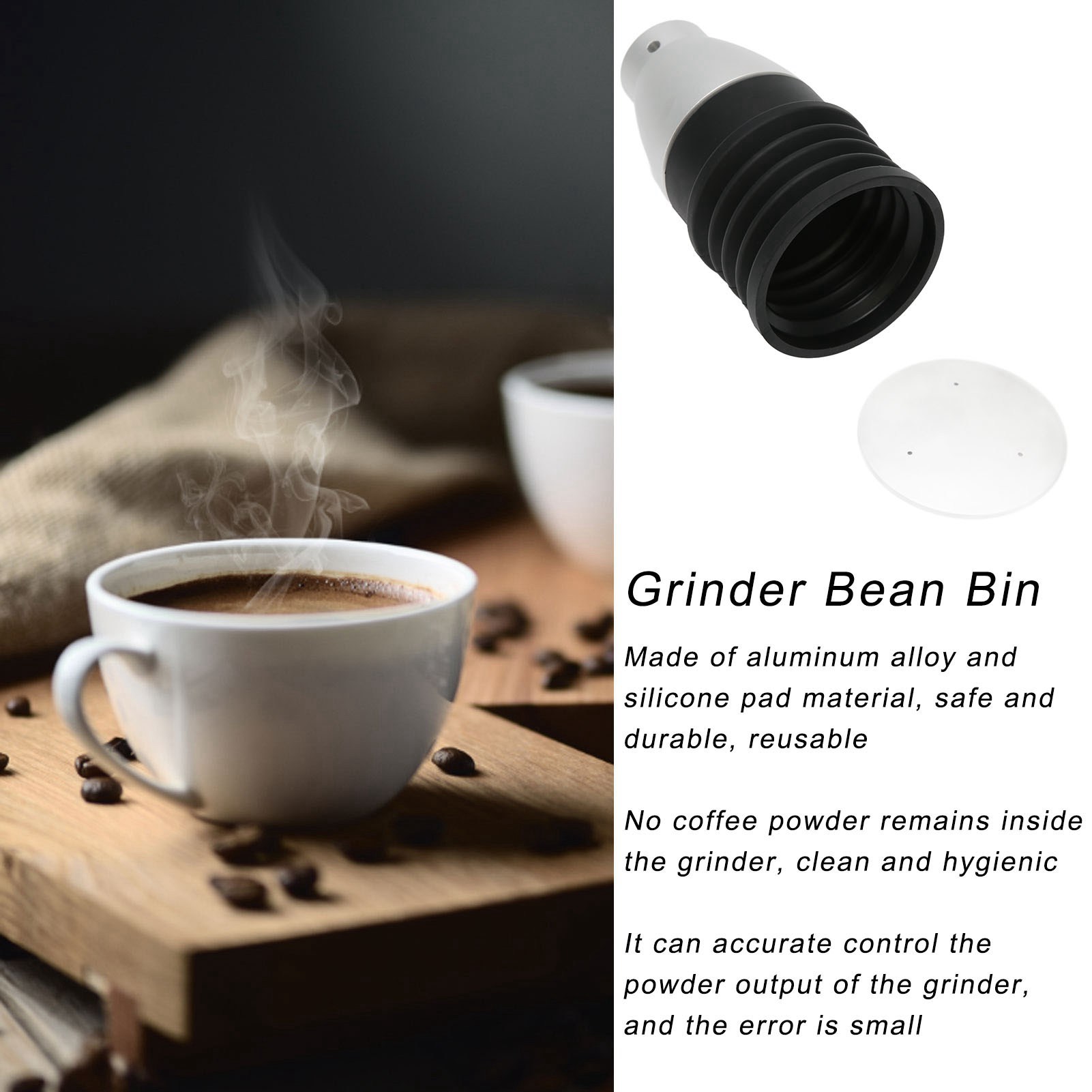(Silver) 60g Coffee Grinder Bean Bin Aluminium Alloy for Eureka Mignon Black