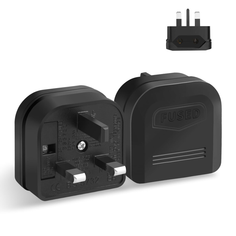 2 Pack EU to UK Plug Adapter, European to UK Plug Adaptor, Euro Schuko 2 Pin to