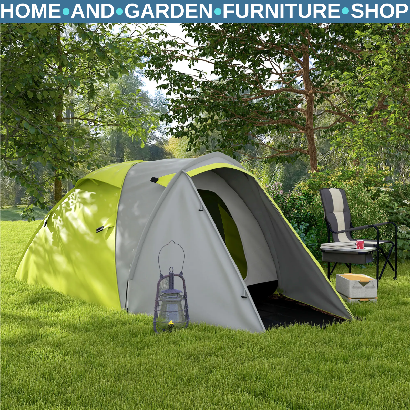 Eurohike Sendero Tent for Four People with Porch and Living Area, 4 Man, Easy to Pitch, Tunnel, Sewn In Groundsheet, Family Camping, Festivals, Wild Camping, Backpacking, 2000mm HH (Bright Green)