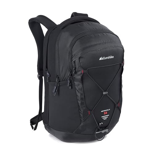 Eurohike Metropolis 33 Litre Backpack with Laptop Sleeve, 33L Daysack, Durable, Adjustable & Ventilated Rucksack, Bag for Men & Women, Ideal for Commuting, School, Work, Hiking & Travel (Black)