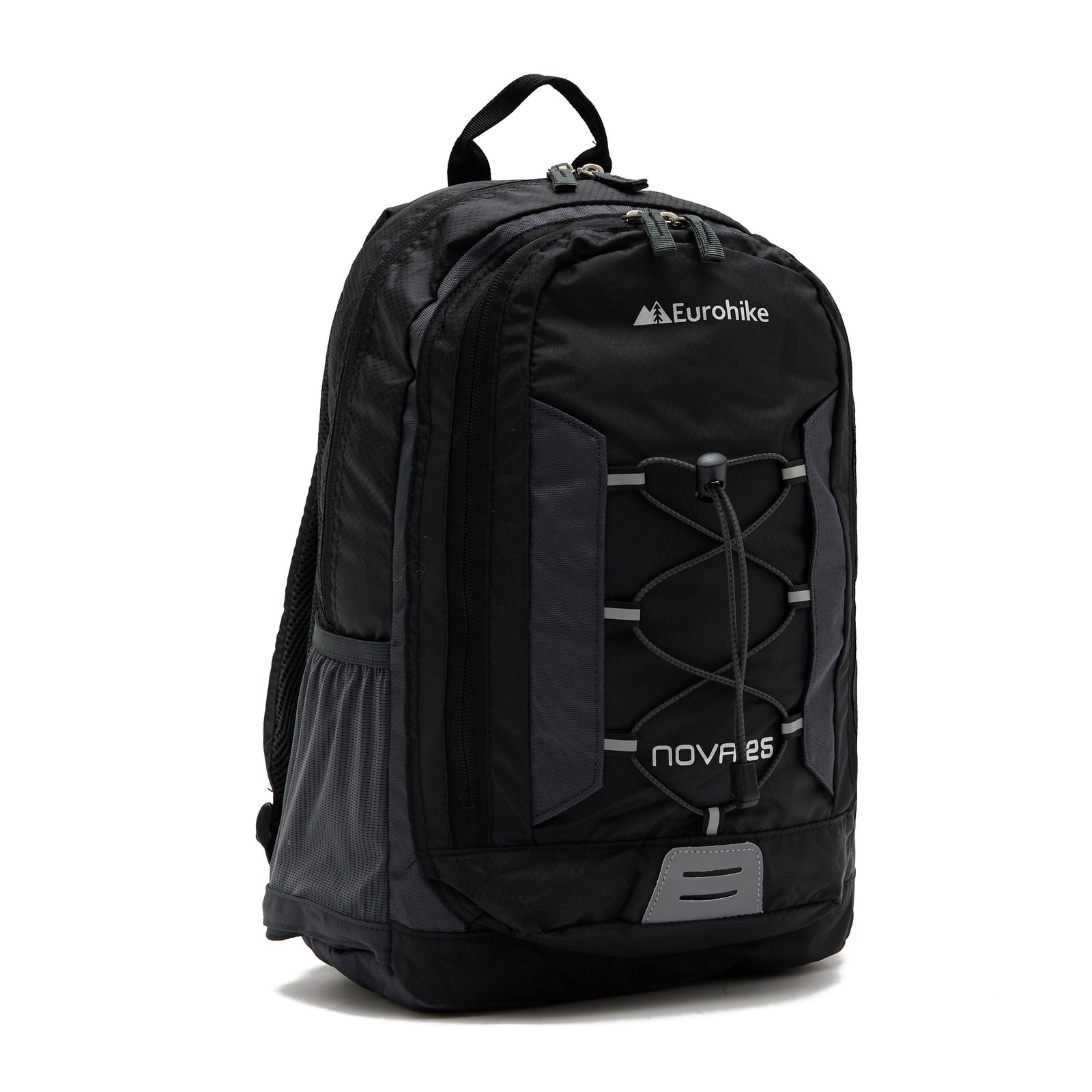 Eurohike Nova 25 Litre Daysack Travel Rucksack Dual Compartment Backpack Black
