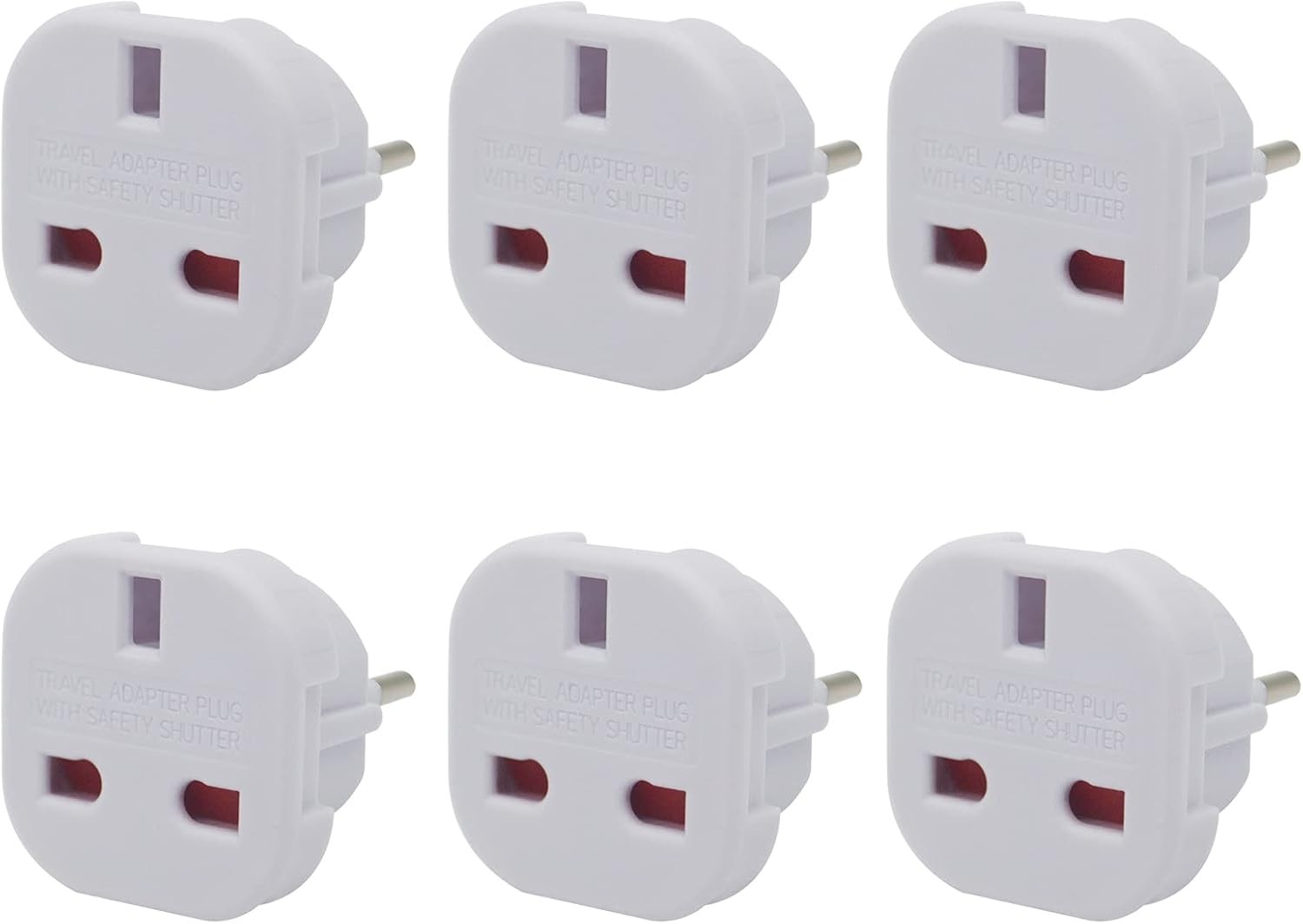 Q4U 9825 Travel Adaptor White UK to EU Europe European Plug Adapter UK to EU, UK 3 Pin to Plug pack of 6