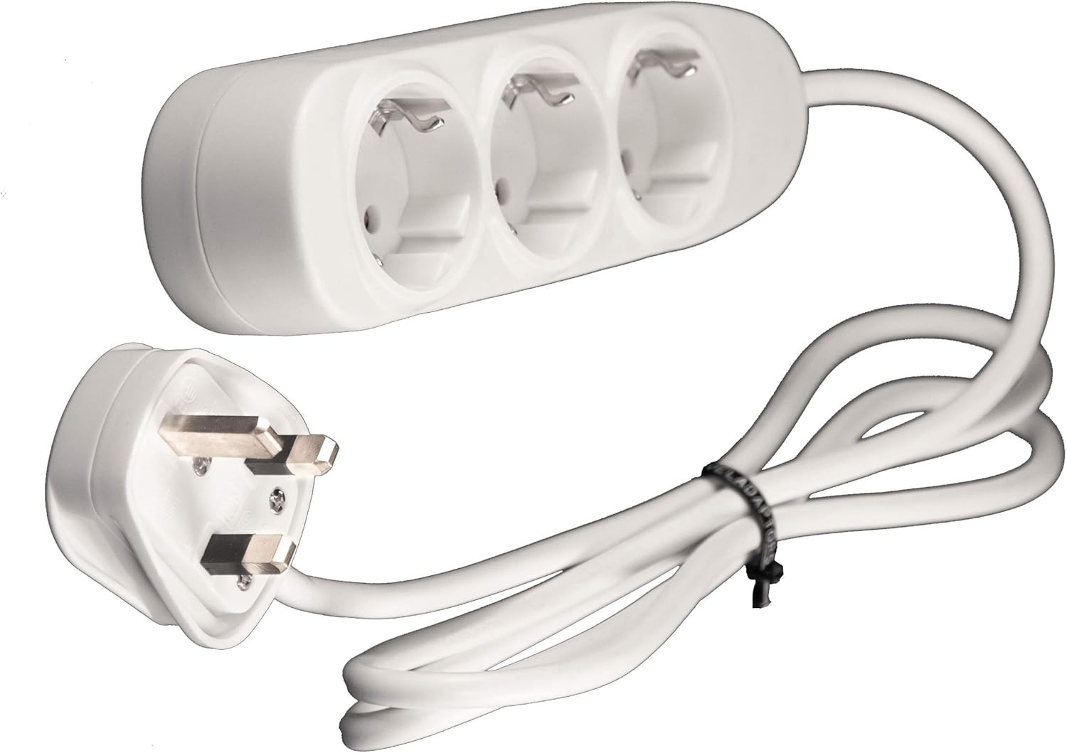 UK Europe Travel Adapter Adaptor 1.5 metre Extension Lead 3 Way Type E/F Schuko