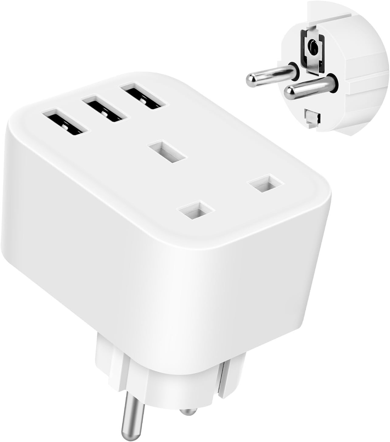 UK Visitor Travel Adapter | 3 Pin Earthed Plug for Europe, America, Asia Adapter