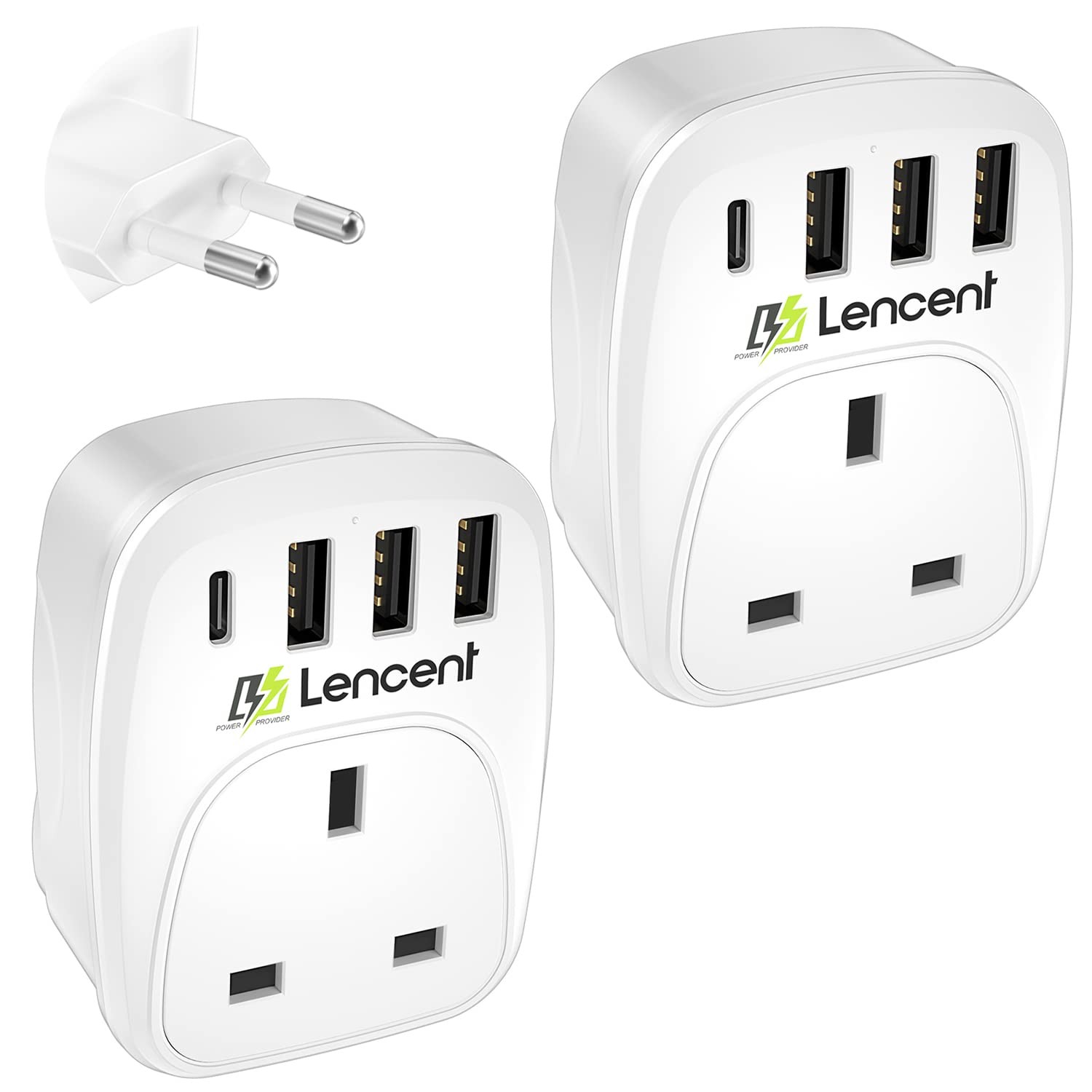 LENCENT 2X UK to EU Euro Europe Plug Adapter, Grounded European Travel Adapter