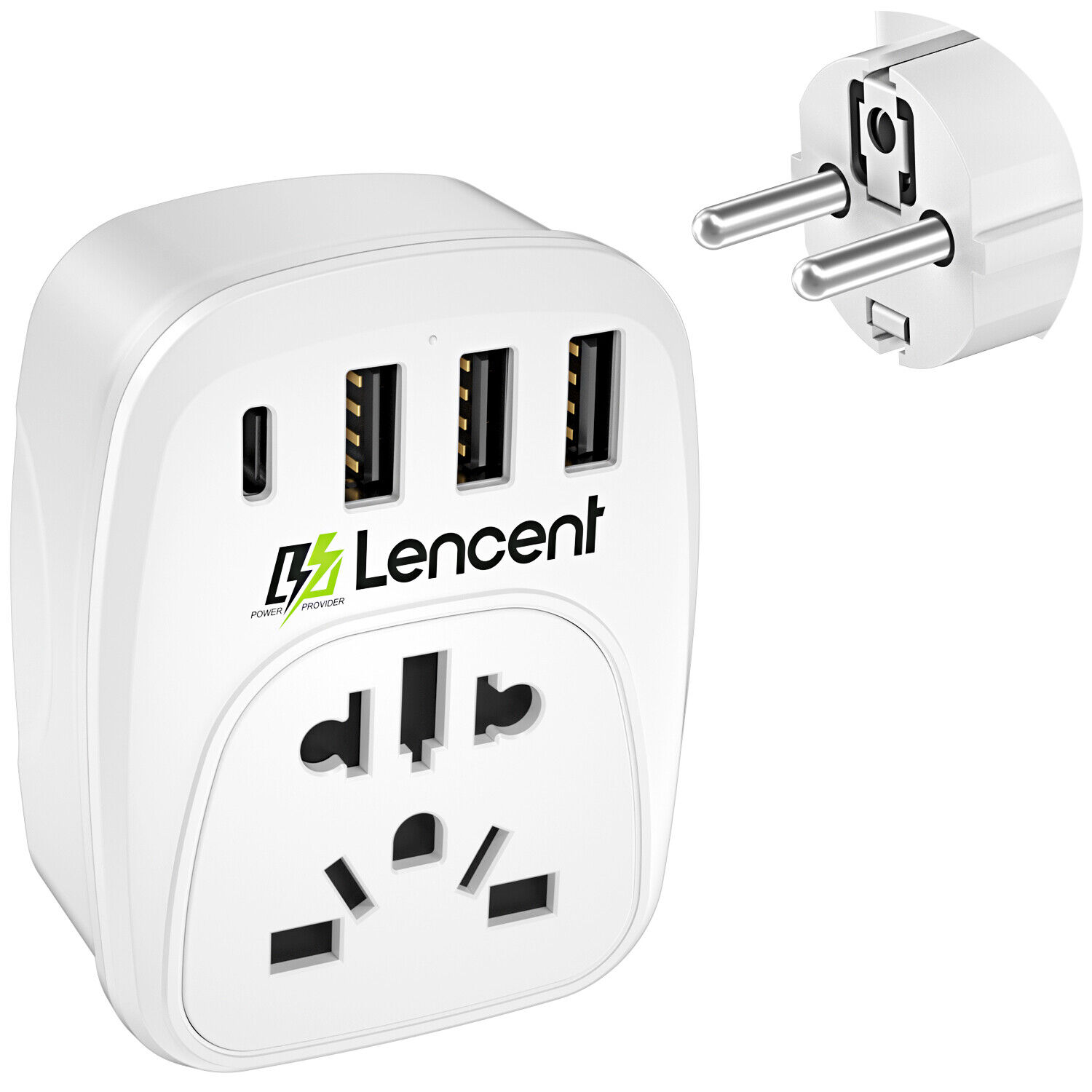 LENCENT Worldwide US AUS UK to EU Euro Europe Travel Plug Adapter with 4 USB
