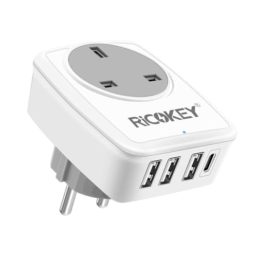 European Plug Adapter,Uk to European Plug Adapter,Travel Adapter Uk to Europe with 4 USB Ports, Euro Europe Grounded Charger for Germany France Spain Turkey Poland Portugal Netherlands(Type E/F)