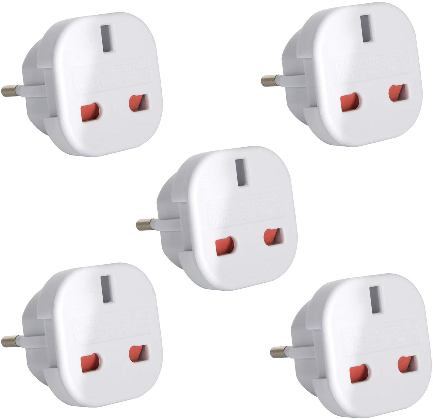 DAPTER 5 Pack White UK to European Plug Adapter | Travel Adapter UK to Europe | Euro Plug Adapter (Type G to C, E, F) | Travel Plugs UK to EU Countries (SPAIN, ITALY, GREECE, TURKEY, POLAND & More)