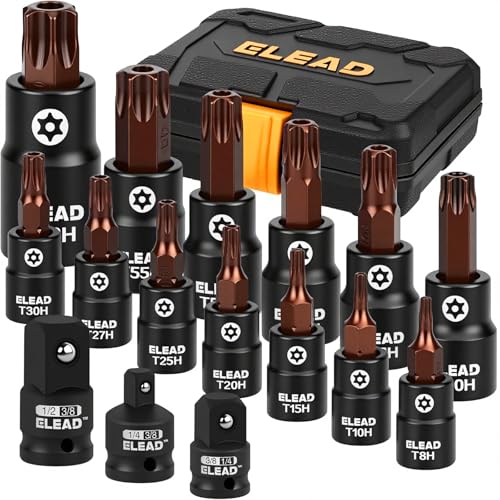 16-Piece Torx Bit Socket Set - Premium S2 Steel European Style T8-T60 with Socket Adapters, Star Bit Socket Set 1/4”, 3/8” and 1/2” Drive | Professional Mechanic Garage Tools