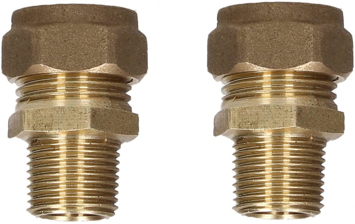 GROHE Pair of Adaptors for UK Fittings - 15mm Compression by 3/8 Inch BSP Male Thread (Ideal for connecting European 3/8" Flexi Connections, Brass Adapters for Kitchen & Bathroom Mixer Taps), Set of 2