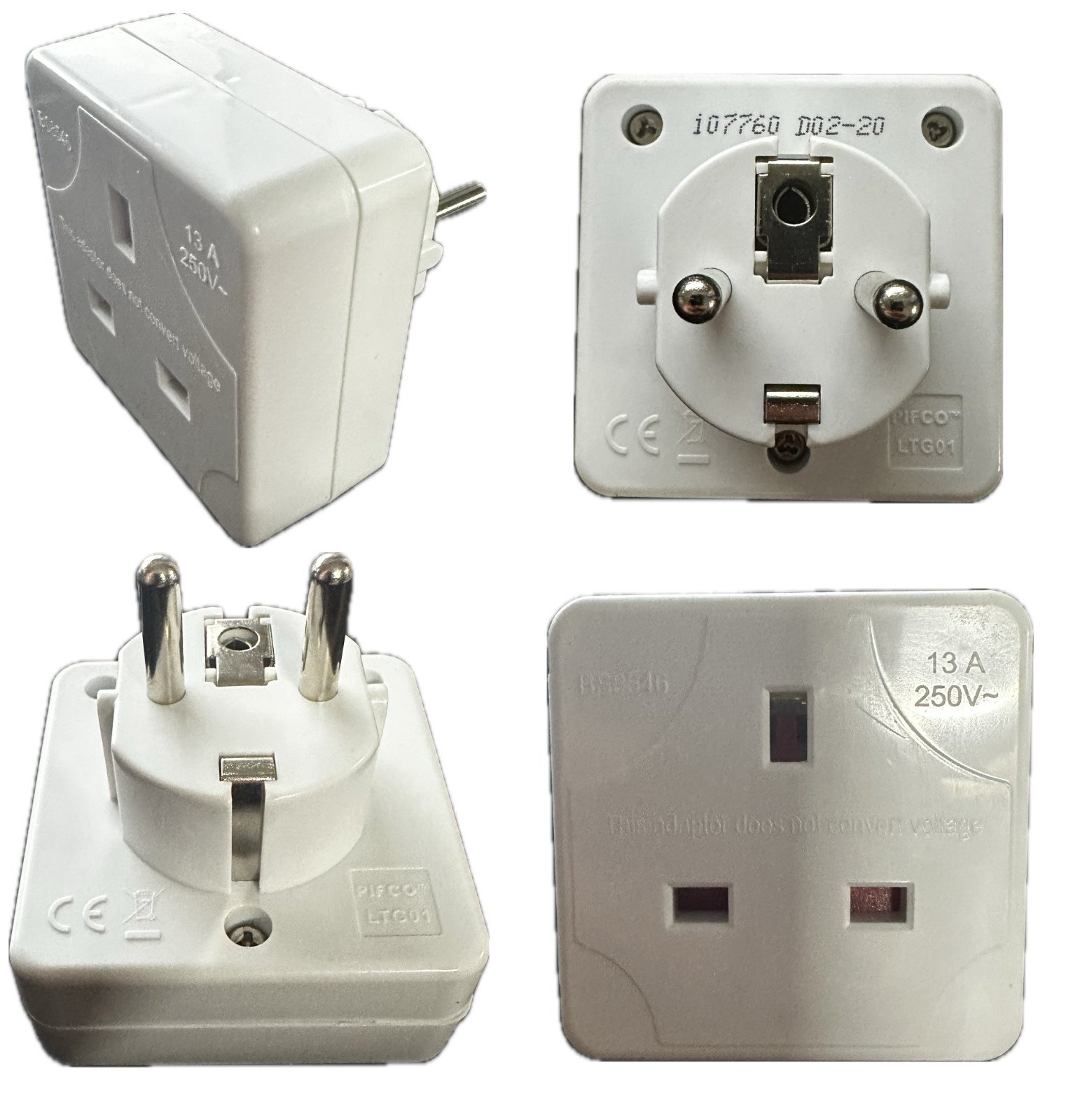 UK 3 Pin to EU 2 Pin 10 Amp European Travel Adaptor Plug CE Approved