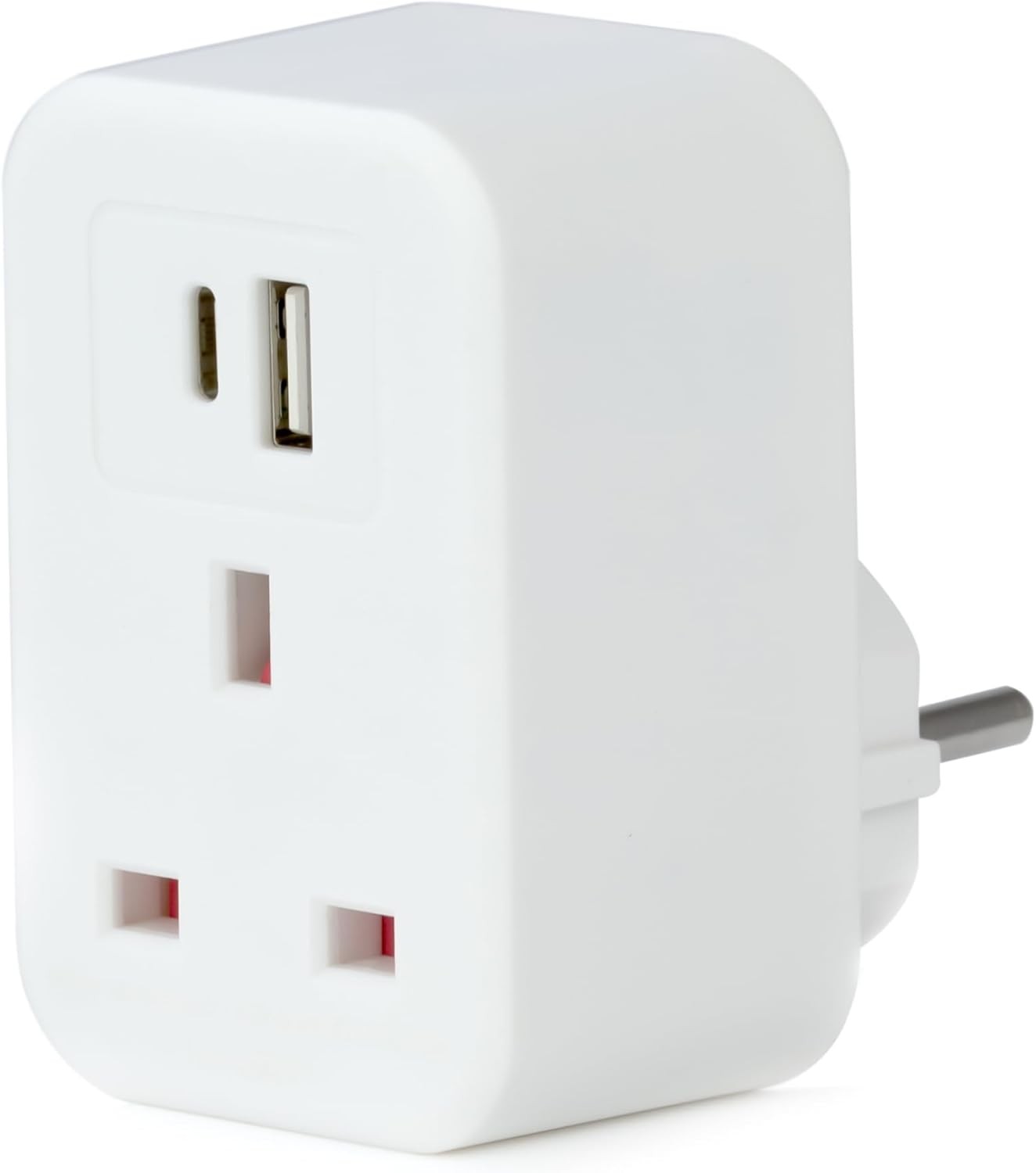 #UK to EU European Travel Adaptor Mains 1 Way with 2x USB Charging Ports White