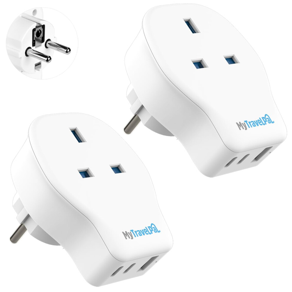 EUROPEAN TO UK TRAVEL ADAPTER, 2 TO 3 PIN TRAVEL PLUG/ADOPTER 3 PIN ADAPTOR PACK OF 2