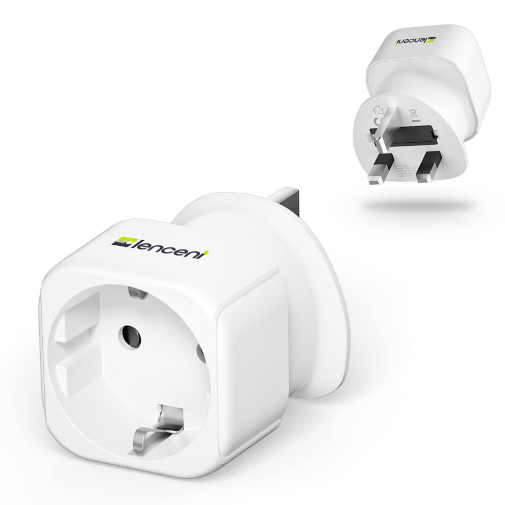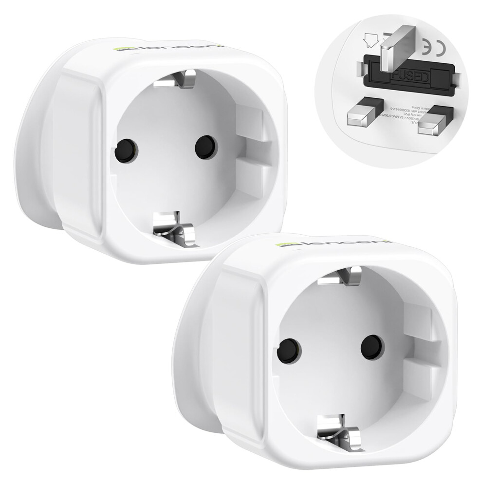 LENCENT 2X EU to UK Plug Adapter, Europe Schuko 2 Pin to 3 Pin UK Travel Adaptor, European Euro to British Adapter- 2 Pack, White