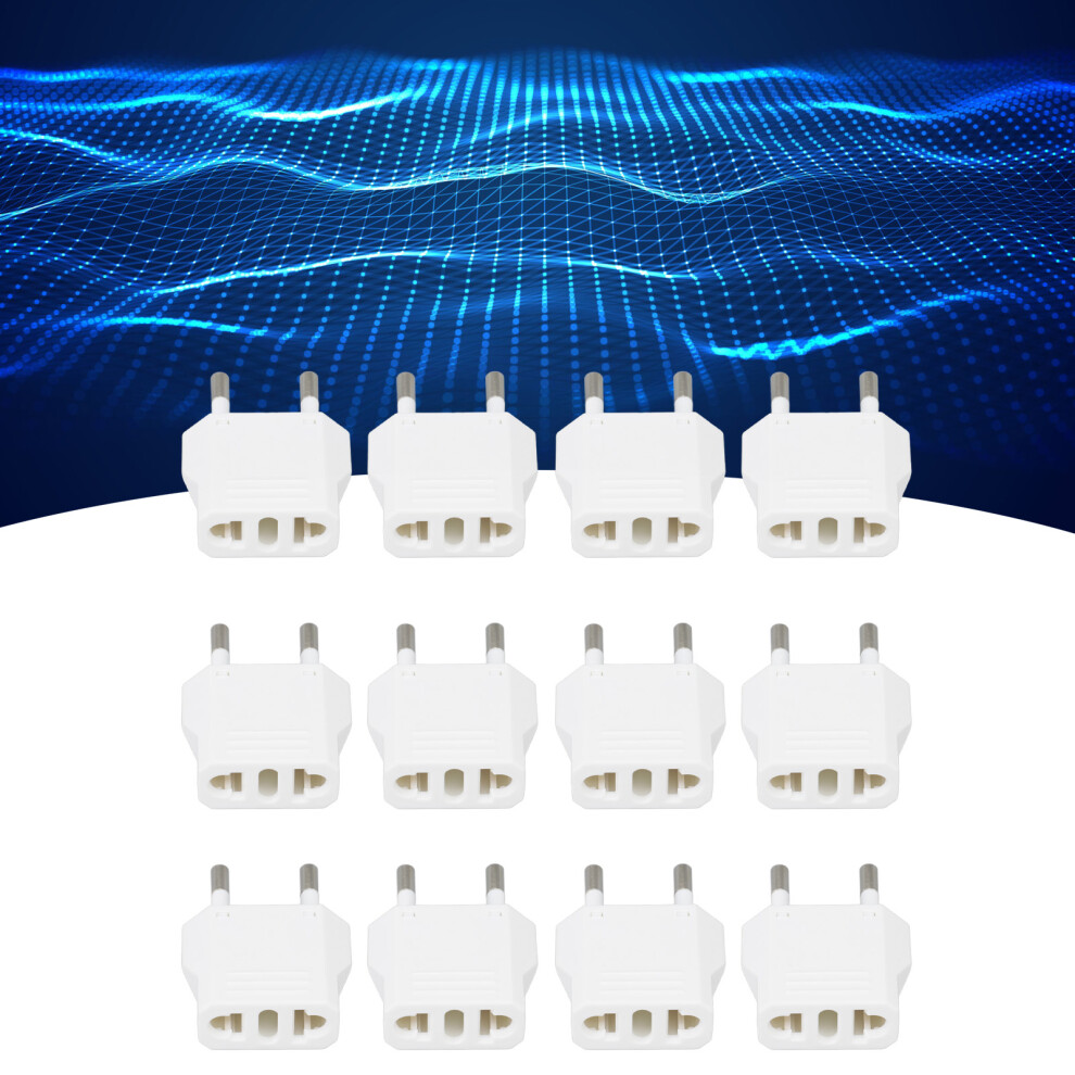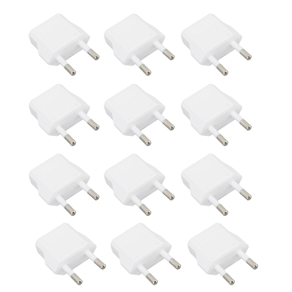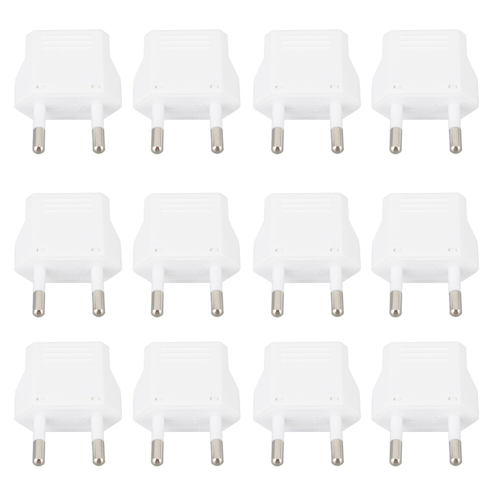 12Pcs European Travel Plug Adapter EU Socket Converter PC Shell 124g