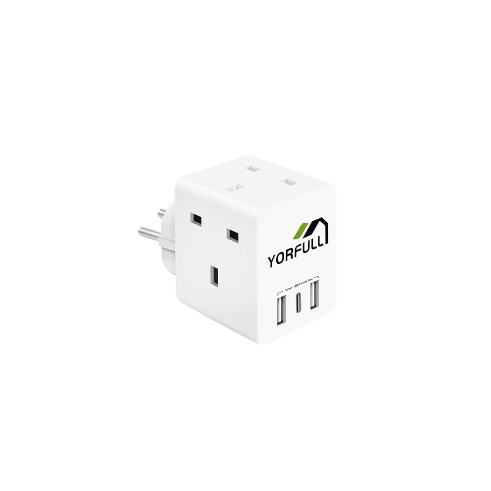 UK to European Plug Adapter with 3 USB Ports and 1 USB C, European Travel Adapter Plug Extender,Grounded European Plug Adapter
