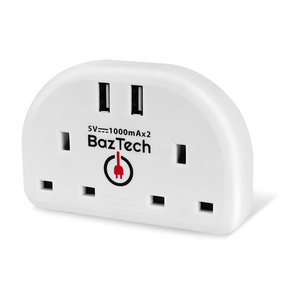 BazTechElectroS European Travel Adapter Plug EU Two Pin Converter to UK 3 Pin Mains Switch Extension 2 Sockets with 2 USB Ports...