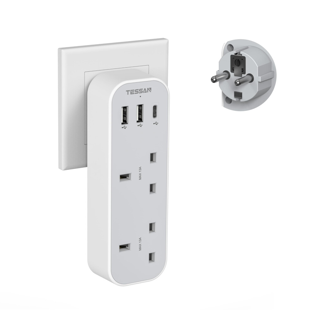 UK, European, Travel, Plug, Adapter, TESSAN, EU, USB, Ports, Way, Adaptor, Europe