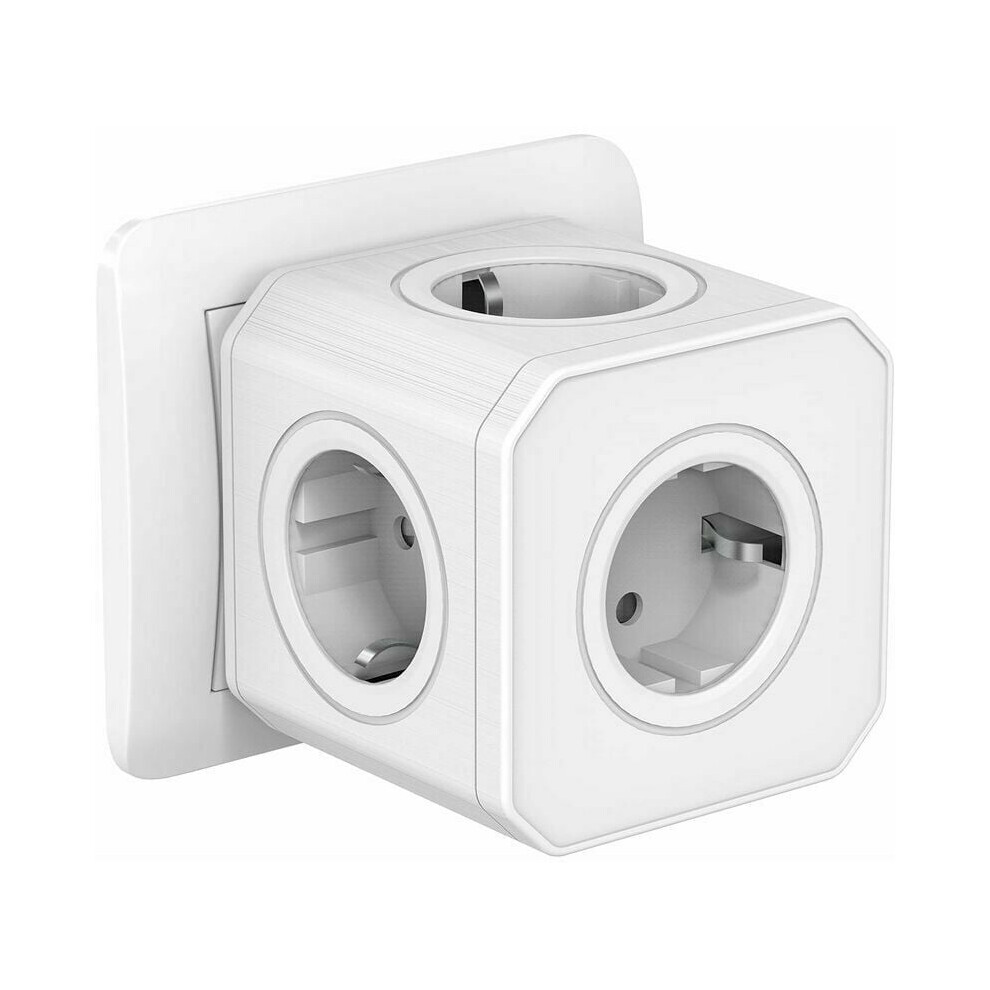 Versatile Power Station, European Travel Plug Adapter with Portable Size, Schuko Ground Sockets, for Travelers and Students, White