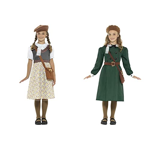 Smiffys Evacuee School Girl Costume, Grey with Dress, Hat, Bag & Name Tag, Girls Fancy Dress, Child Dress Up Costumes Halloween, World Book Day
