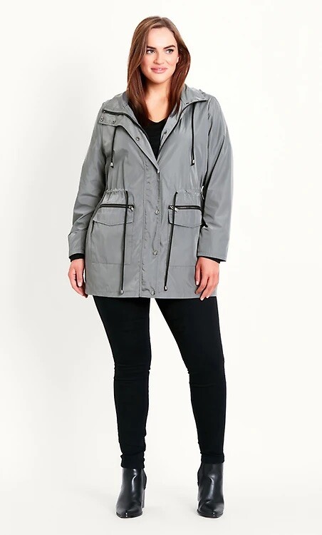 EVANS Curve Plus Lightweight Fully Lined Hooded Zip Coat Jacket Grey UK Size 20