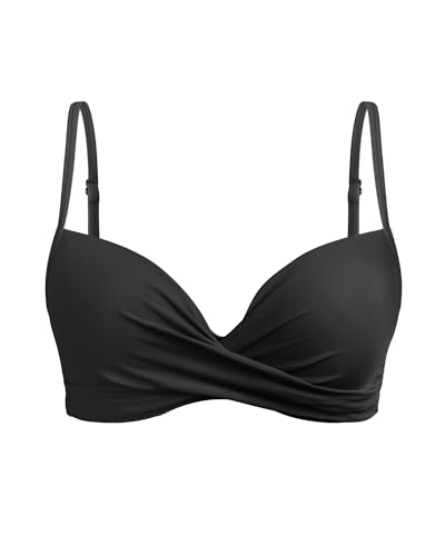 Aqua Eve Women Underwire Bikini Top Only - 2025 Push Up Swim Top Padded Bra Swimsuit, Black, Medium