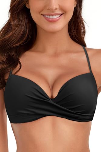 Aqua Eve Women Underwire Bikini Top Only - 2025 Push Up Swim Top Padded Bra Swimsuit, Black, Large
