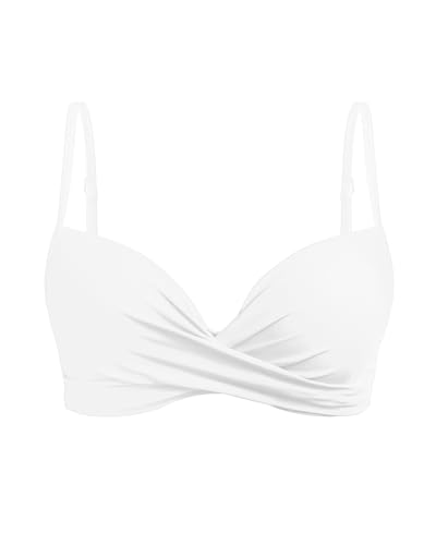 Aqua Eve Women Underwire Bikini Top Only - 2025 Push Up Swim Top Padded Bra Swimsuit, White, Medium