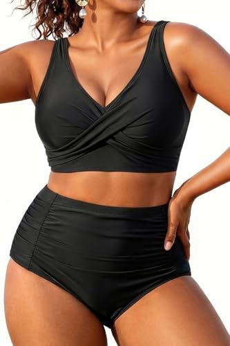 Aqua Eve Women Plus Size Two Piece Swimsuit High Waisted Bikini Set Tummy Control Bathing Suit, Black, 18 Plus