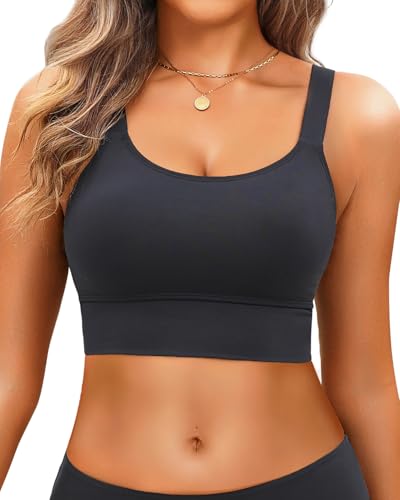 Aqua Eve Women Full Coverage Bikini Top No Bottom Push up Swimsuits Top Sport Bra Bathing Suits Tops, Black, Large