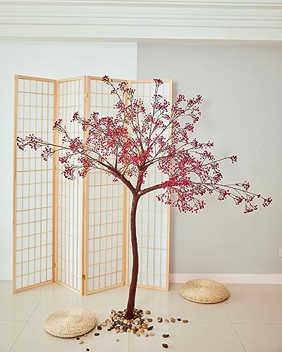 RNNYWDRQ 1.2M/3.8FT Romantic Cherry Blossoms Landing Landscape Plants Living Room Exhibition Simulation Artificial Tree New Year's Eve Festival Living Room Window Decoration red