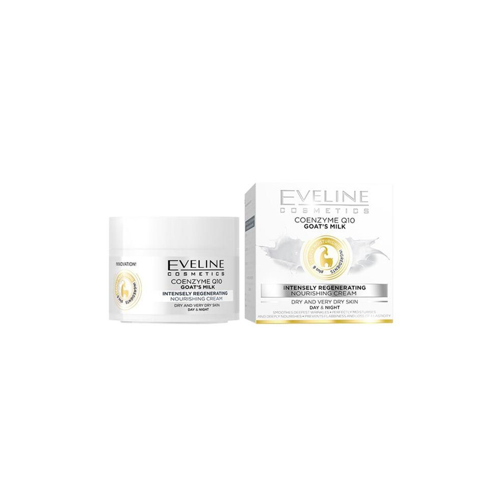 Eveline Cosmetics Coenzyme Q10 & Goat Milk Moisturizing Face Cream 50ml | Regenerating Day & Night Cream for Dry Skin