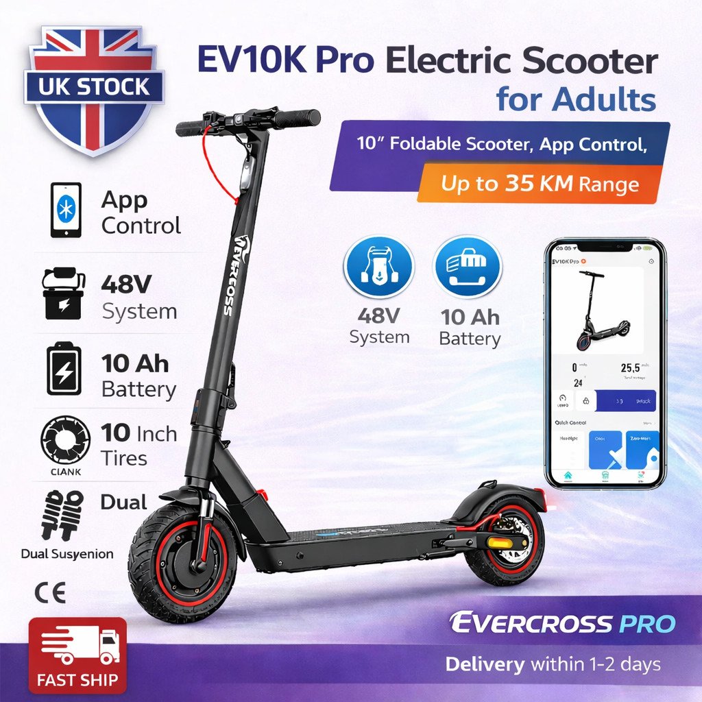 EVERCROSS EV10K PRO E-Scooter 10'', Foldable 500W Electric Scooter Adults, E-Scooter with Battery 410WH, 3 Speed Modes, App Control, LED Display, Dual shock absorbers, Max load 150KG