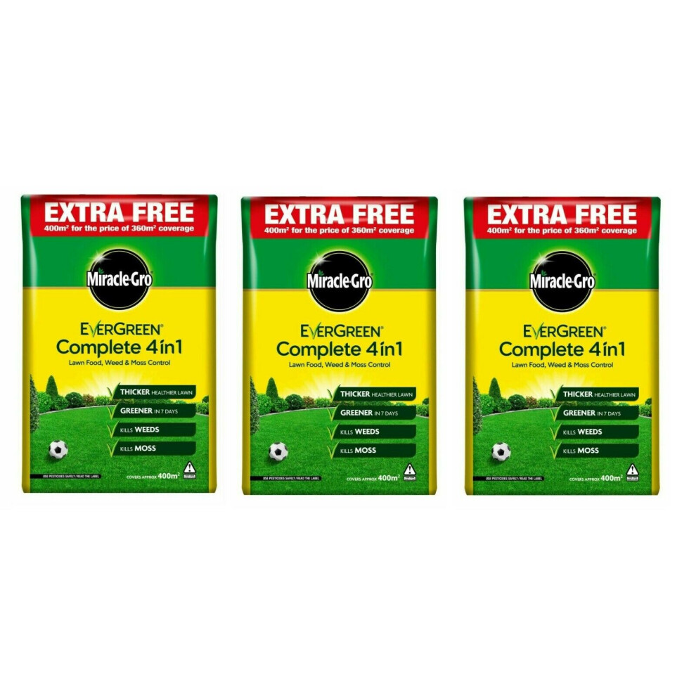 (3) EverGreen 360sqm Complete 4-in-1 Lawn Care Weed