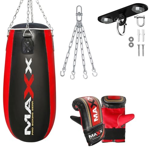 Maxx Tear Drop Bags Set Heavy Filled Punch Bag Boxing Set With Wall Bracket or Ceiling Hook + Free Chain, Buy as Single Punching Bag With Choice Given (Bag with Hook +Mitts)