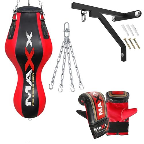 MAXX Tear Drop Bags Set Heavy Filled Punch Bag Boxing Set With Wall Bracket or Ceiling Hook + Free Chain, Buy as Single Punching Bag With Choice Given (Bag + Chain)