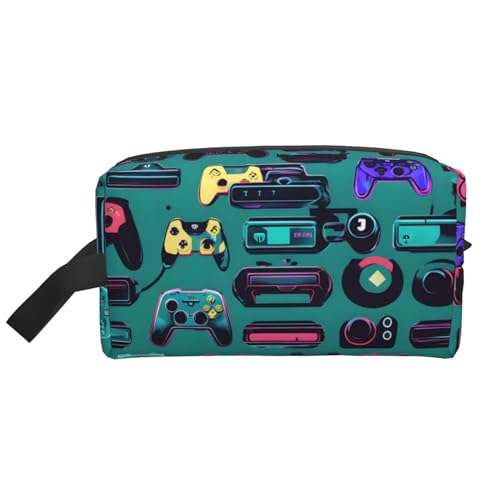 HVTTIOR - Gaming controller patterns, printed toiletries, makeup and everyday essentials, zippered travel bag, white, one size fits most