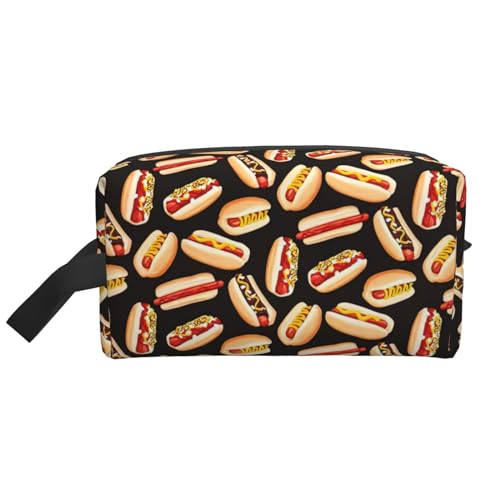HVTTIOR Fun Food Hot Dogs Toiletries for Makeup & Everyday Essentials, Travel Zipper Bag, White, One Size