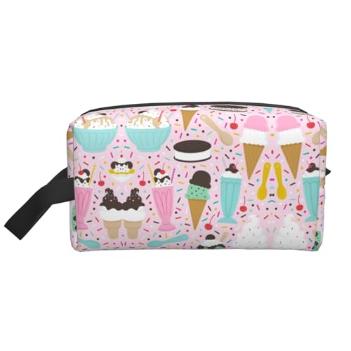 HVTTIOR - Sweet Ice Cream Print Toiletries & Everyday Essentials, Travel Bag with Zipper, White, One Size Fits All