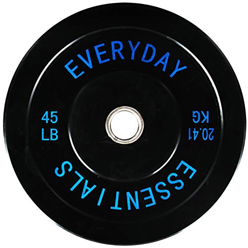 Everyday Essentials Color Coded Olympic Bumper Plate Weight Plate w Steel Hub, Single, Black, 45 Pounds
