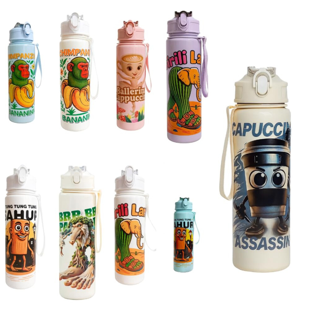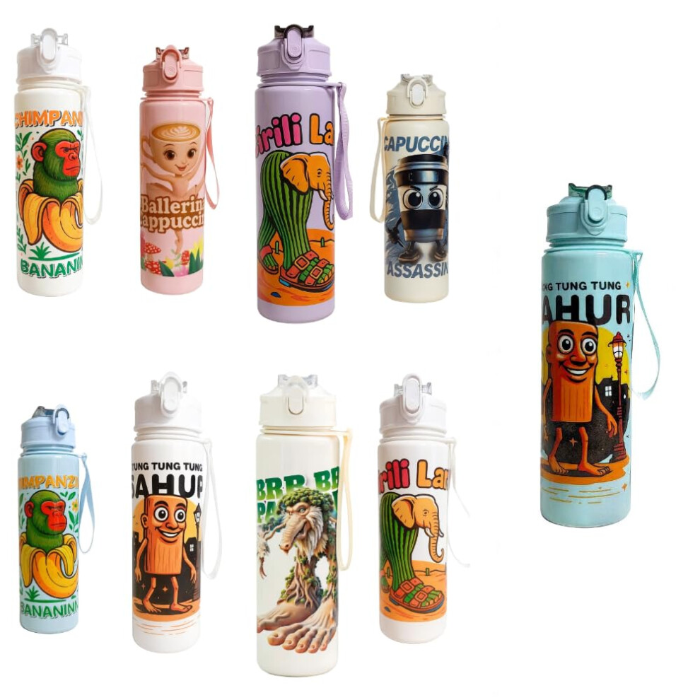 Jamaah Everyday Essentials Meme Style Design Water Bottle 700ml with secure flip lock lid for Kids & Adults, meme Inspired, Bottles, Gifts for Fans