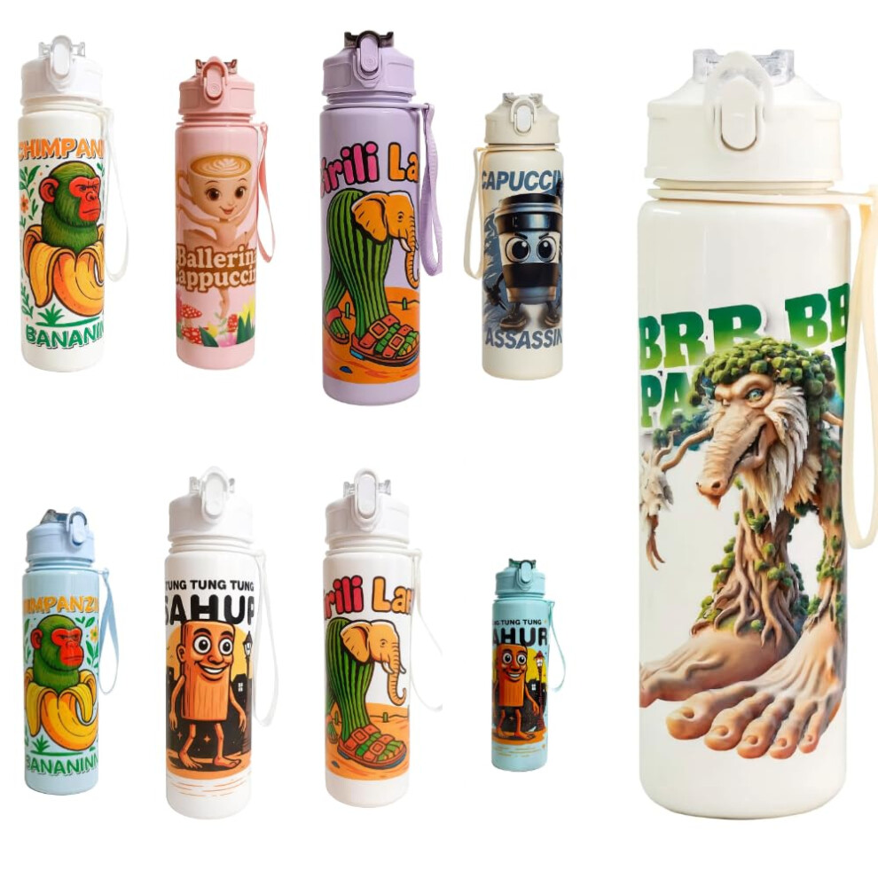 Jamaah Everyday Essentials Kids Novelty Cartoon Water Bottle ? Fun Meme Style Design - Brr Brr